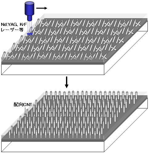 | ▲レーザー照射法によるCNTエミッタ起毛処理イメージ |