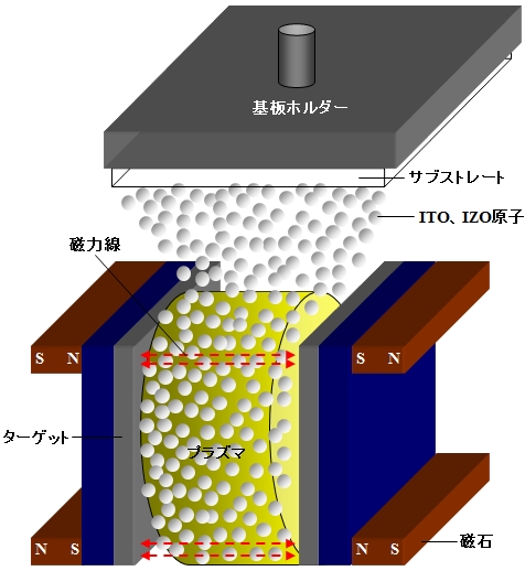 スパッタリング成膜時におけるターゲットの利用効率を高めるために開発されたターゲット方式。図のように円筒形ターゲットを円回転させる仕組みで、回転によってターゲットのエロージョンが均一化されるため利用効率が70〜80%に向上する。コンベンショナルなプレーナーターゲットはカソードの背後にエロージョンを均一化させる揺動マグネット機構を設けても利用率は最大40%に過ぎず、2倍前後という高い利用効率が得られる。このため、ここにきてとくに高価で資源枯渇が懸念されるITOの成膜で採用する動きが顕在化している。