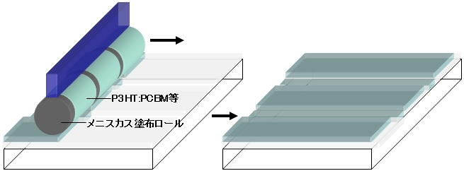 | ▲バルクヘテロ接合半導体膜の塗布イメージ |