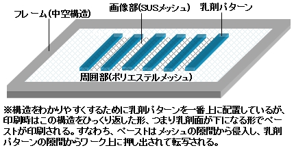 元来、ロータリースクリーンマスクはNi電鋳メッシュが用いられてきたが、近年ではフラットスクリーンマスクと同様、SUSメッシュとエマルジョン乳剤を組み合わせた製品が登場するなど、FPCをはじめとするエレクトロニクスデバイスで採用機運が高まっている。