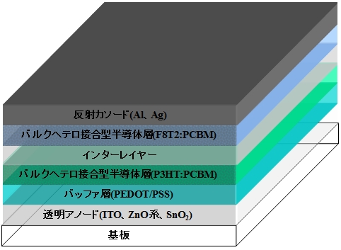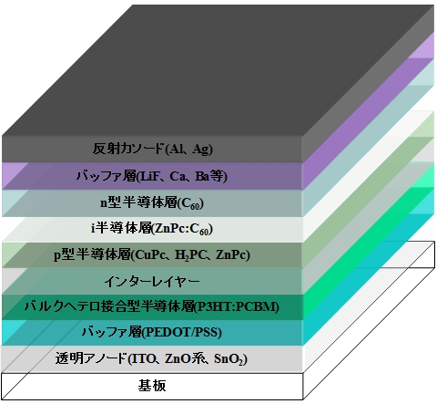 | ▲タンデム型有機薄膜太陽電池の構造例 |