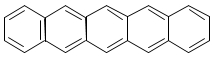 五つのベンゼン環が直線状に縮合した多環芳香族炭化水素で、もっともポピュラーなp型有機半導体。有機トランジスタの研究開発を活発化した立役者ともいっていい。そのキャリアモビリティは0.1〜1cm2/V・sと有機半導体としてはかなり高い。基本的に有機溶媒に不溶なため真空蒸着法で成膜されるが、トリクロロゼンゼンには溶解するため各種ウェット法で成膜することも可能である。