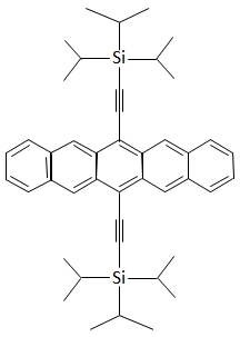 代表的なp型有機半導体であるペンタセンの分子短軸方向に嵩高いトリイソプロピルシリルエチニル(TIPS)基を導入した有機半導体。溶媒に可溶であるため、各種ウェットプロセスで成膜することができる。ただし、キャリアモビリティはペンタセンに比べ劣る。