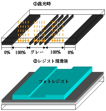 ところで、フォトマスクを用いてファインパターンを作製する場合、パターニング精度は描画装置の解像度>フォトマスクの解像度>デバイスパターンの解像度と、プロセスフローが進むにつれて精度が劣化する。このため、解像性・精度・寸法安定性はフォトマスク基板の種類と描画装置の解像度によって決まると考えていい。