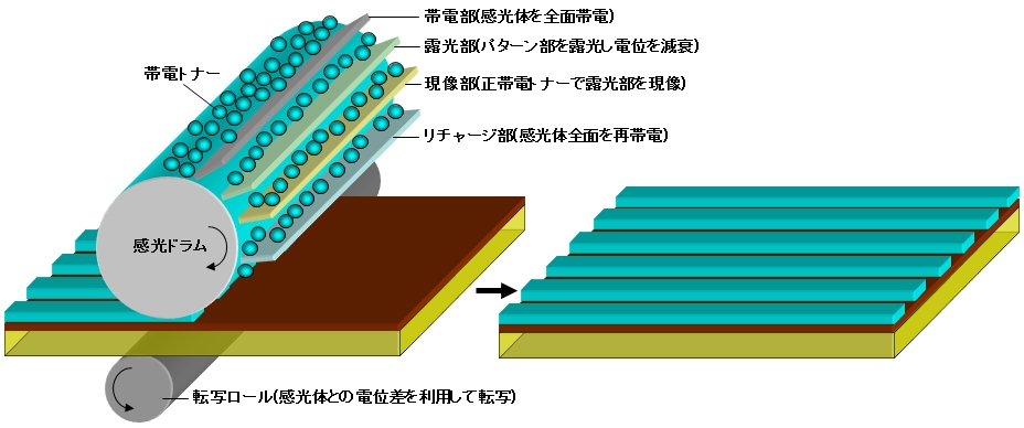 インクジェットプリンティング(IJ)法、スクリーン印刷法、グラビアオフセット印刷法、凸版印刷法などの各種印刷法でエレクトロニクスデバイスを作製することをいう。別名プリンテッドエレクトロニクスともいう。