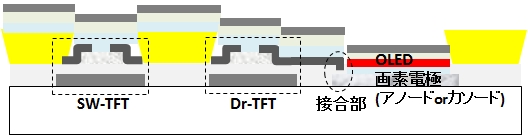 | ▲AM駆動有機ELDの断面構造(TFTはIGZO-TFTの例) |